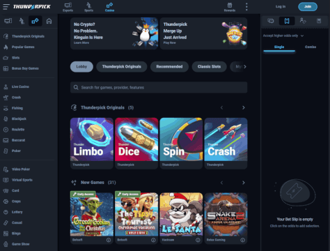 Jako někdo, kdo občas sleduje turnaje v Counter-Strike, jsem nemohl vynechat Thunderpick. Toto online casino crypto se odlišuje svým silným zaměřením na sázky na videohry. Celá platforma běží na vlastním propracovaném softwaru, což zajišťuje unikátní zážitek, který u white-label kasin prostě nenajdete.